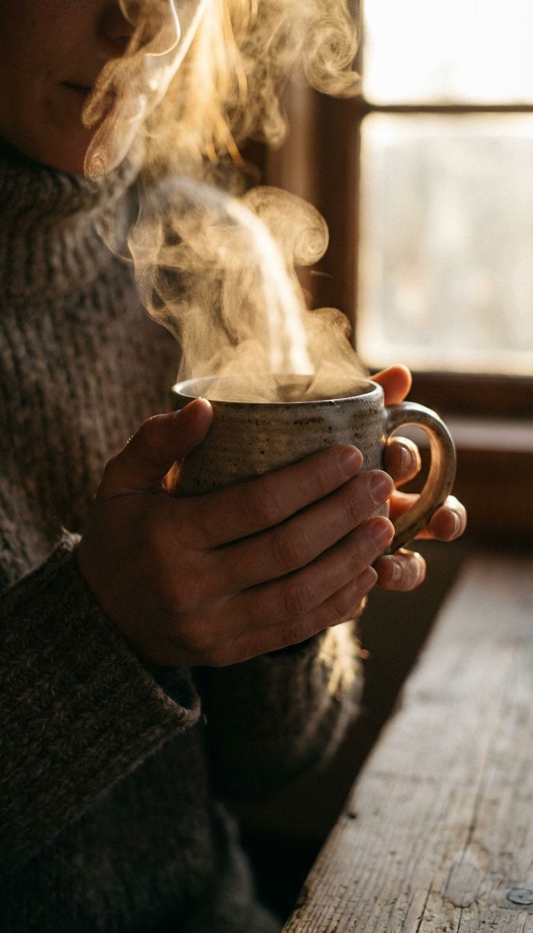 Wenn du trinkst, tu nur das. Halte die warme Tasse mit beiden Händen. Spüre die Wärme, die sich in deinem Körper ausbreitet. Jeder bewusste Schluck ist eine Verbindung mit der Natur draußen und deiner Natur drinnen.