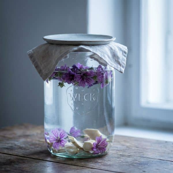 Das ist die „Slow Medicine“ unter den Wasserauszügen. Manche Wirkstoffe, besonders die sogenannten SchleimstoffeSchleimstoffe Schleimstoffe sind pflanzliche Inhaltsstoffe, die mit Wasser aufquellen und eine gelartige Substanz bilden. Sie kommen vor allem in Samen, Blättern, Wurzeln oder Rin... Mehr (die wunderbar reizlindernd wirken), werden durch Hitze zerstört oder verklumpen. Sie brauchen keine Wärme, sondern Zeit.