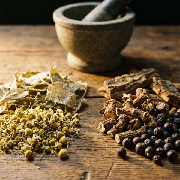 Hier brauchen wir Feuerenergie. Manche Pflanzenteile sind holzig, hart und fest. Sie würden in einem einfachen Aufguss kaum Wirkstoffe abgeben. Wir müssen ihre Strukturen mit Hitze und Zeit „aufschließen“.