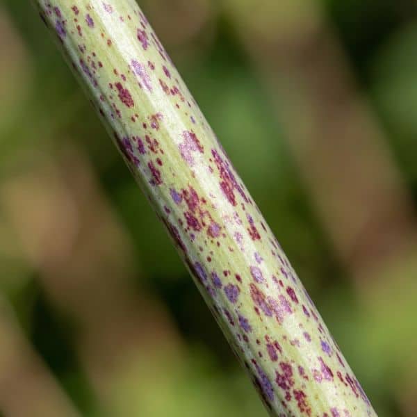 - Gefleckter Schierling (tödlich giftig): Sein Stängel ist rund und rot gefleckt.